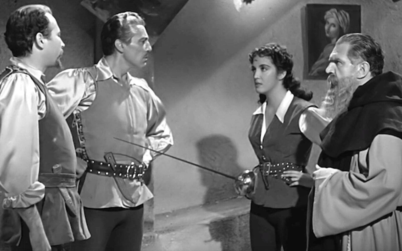 César Romero se ve atrapado entre Rebeca Iturbide (Los tres García, La noche avanza) y Katy Jurado (High Noon) en el primer largometraje en 3-D producido en México, una película de capa y espada visualmente inventiva y a menudo divertida ambientada en los años crepusculares de la España árabe. Codirigida por Edward Dein, coautor de El hombre leopardo de Jacques Tourneur, y el animador de Disney convertido en director Carlos Véjar Jr, El corazón y la espada reúne al siempre valiente Don Pedro de Rivera (Romero) y a sus compinches Ponce de León (Tito Junco) y Lolita (Jurado), que se infiltran en un castillo español ocupado por los moros en busca de venganza, el elixir de la vida y una fórmula para fabricar oro inventada por el alquimista del califa. Puede que incluso rescaten a la sobrina del califa (Iturbide) de un matrimonio concertado. En todo momento, Dein y Véjar Jr. llenan de acción y movimiento cada segundo de su emocionante aventura, aprovechando al máximo cada truco de la imagen estereoscópica.