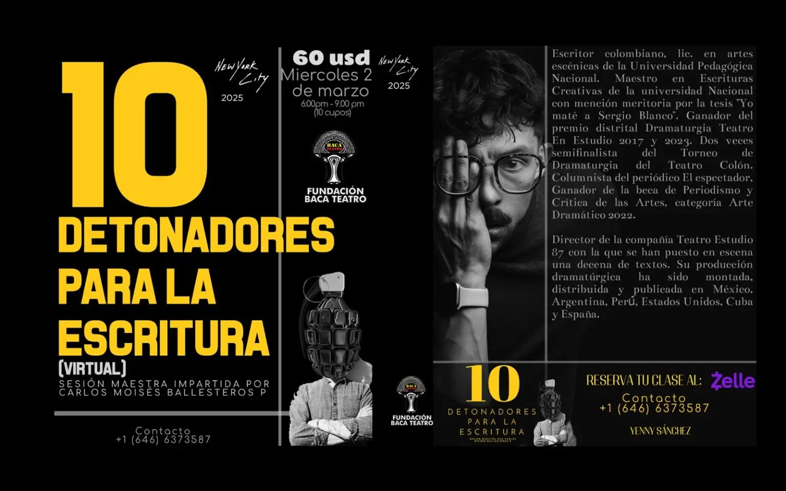 Carlos Moisés Ballesteros Paipilla es uno de los dramaturgos más influyentes de la escena teatral colombiana contemporánea. Licenciado en Artes Escénicas por la Universidad Pedagógica Nacional y con una Maestría en Escrituras Creativas de la Universidad Nacional de Colombia, Ballesteros ha dejado una huella profunda tanto en el ámbito académico como en el profesional. Su talento ha sido reconocido con el prestigioso Premio Distrital de Dramaturgia Teatro En Estudio en 2017 y 2023, consolidándose como una de las voces más destacadas en la dramaturgia nacional.
